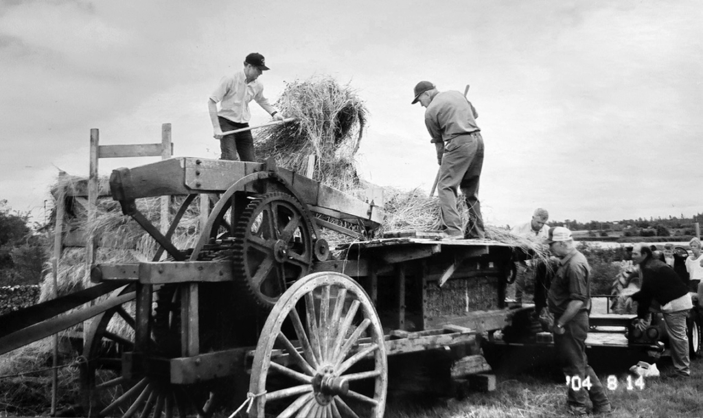 Photo of a c1890s era hay press being operated at Doncaster Farm Antique Farm Show during Sackville’s Fall Fair Weekend, August 2004. Photo by Jim Wheaton