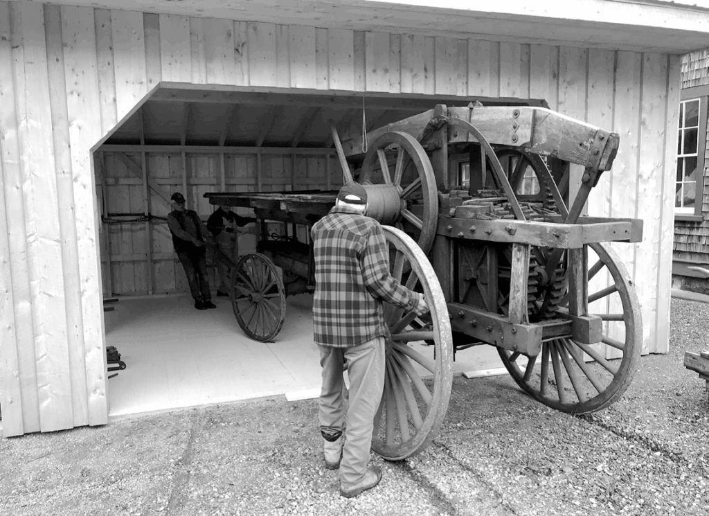 The antique hay press shown above was donated to the Tantramar Heritage Trust by Roy Dixon in 2023. This photo by Paul Bogaard shows it being placed in the Carriage Shed at the Campbell Carriage Factory Museum by Al Smith and Bill Snowdon.